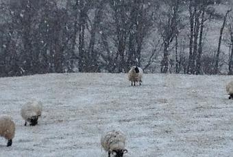 I've found that the least painful way of going running is to do it very first thing before I'm even awake, so it's very easy for my mind to believe it's, at the very least, still asleep. After a while this morning's silent whiteness started to look very familiar as the cycle track passed by fields of sheep. My Granny had a painting on her sitting room wall of a flock of frosty sheep and today it was as if those sheep had stepped out of their elaborate gilt frame.