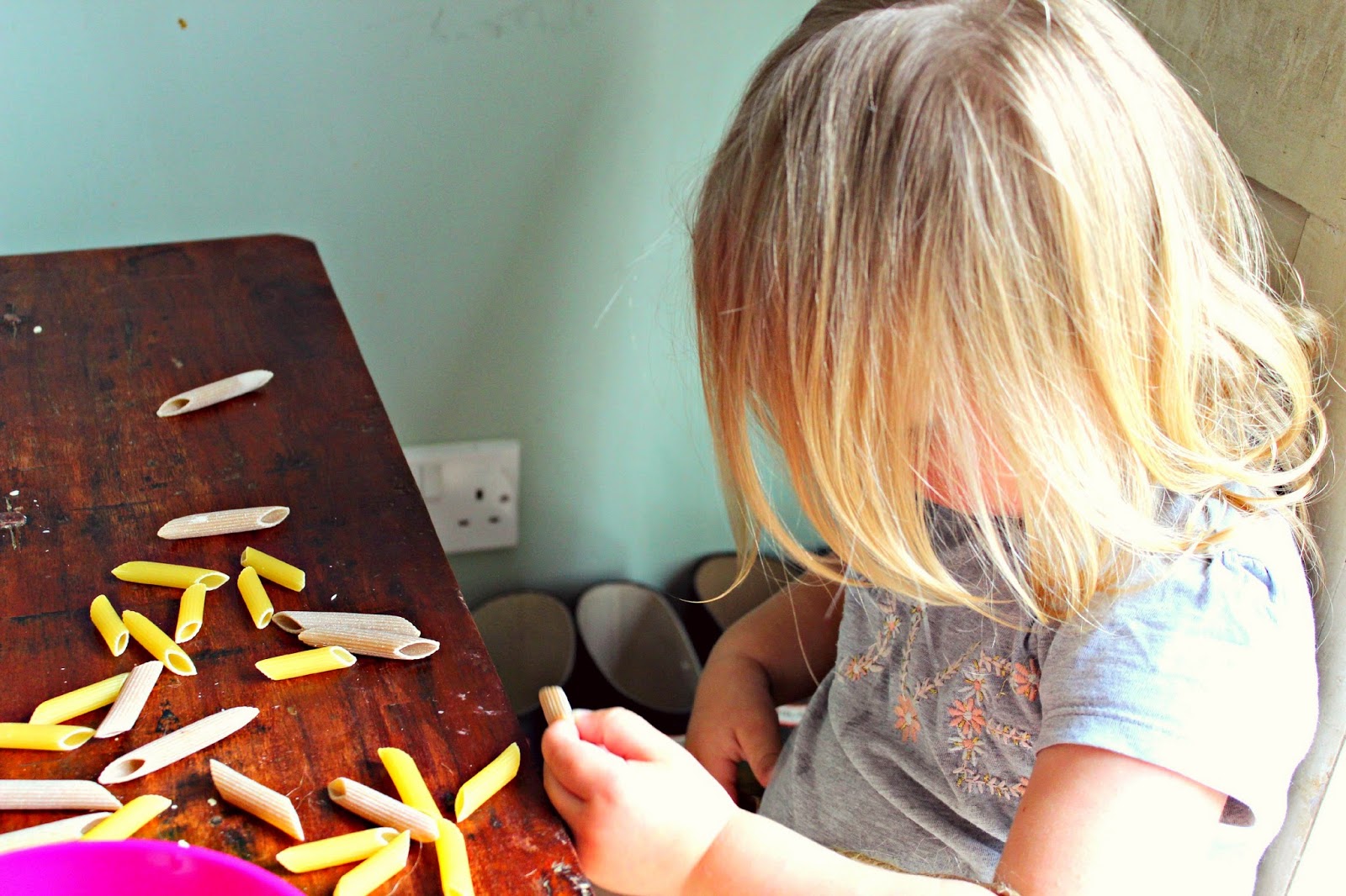One of these activities is actually very very simple. Someone actually suggested in on my Facebook Page! Its just a simple pasta jewelry making activity! In a bowl, I place a piece of string, a variety of tubed pasta and just let her get on with it! I keep it to hand so if I'm cooking dinner I can just get the bowl out of the cupboard and she is good to go.