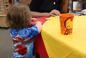 Then, Aoristos – Creationeer arrived to offer his artistic talents to our customers for a few hours. It was amazing to watch him put peoples’ faces into their favorite characters.
