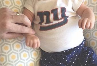 You can see to the left that Rilynn looked adorable for the Giants game this past week, sporting her tiny red felt bow.
