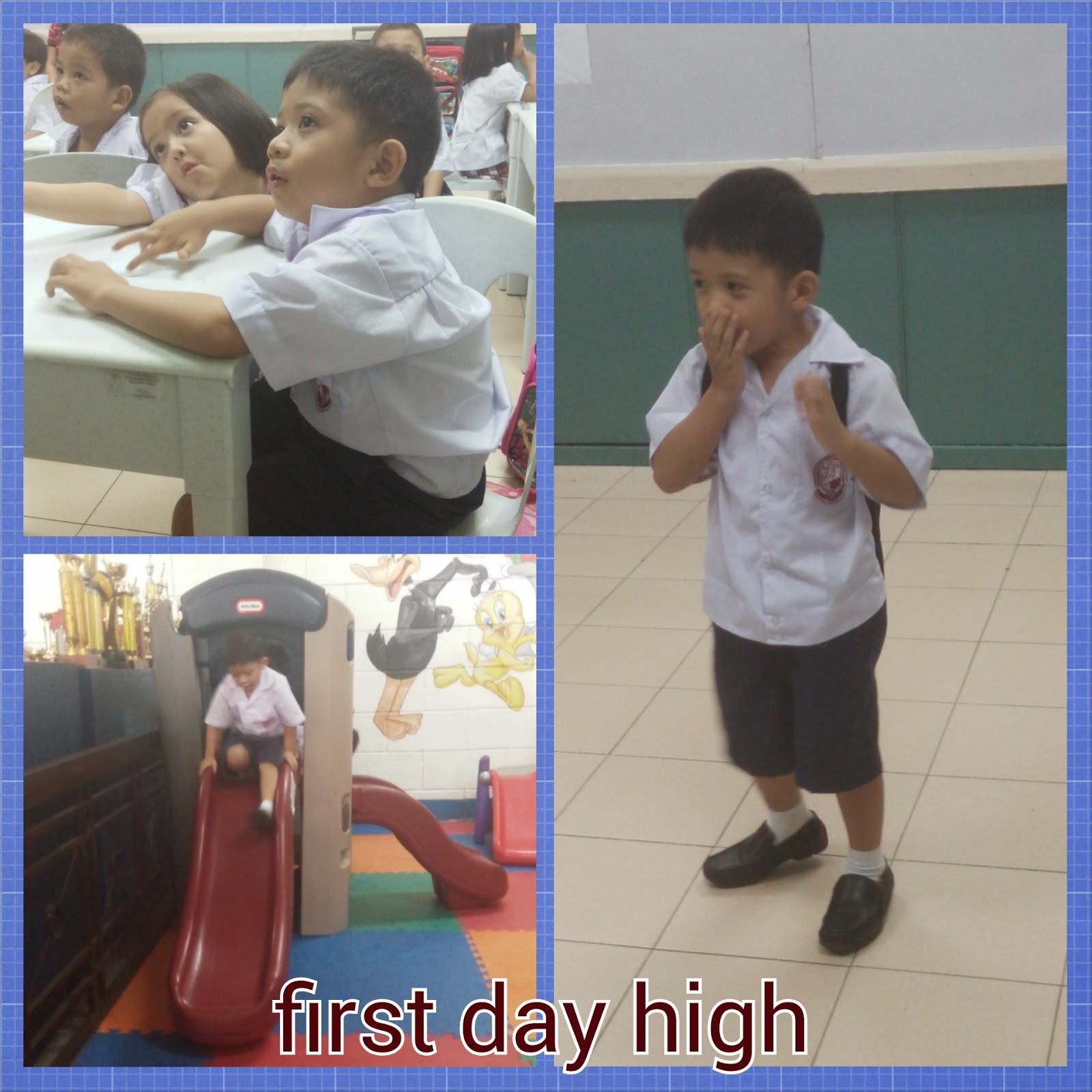 The first day of preschool is an exciting day of my child's life. It is also quite stressful for him because this is a new environment, new classmate, new teachers, first experience of separation with us. He is anxious. But, he is learning to adjust in his new "second home".