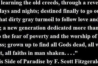 Loss of money and love pushes him on a downward spiral and through this, the author raises a magnificent representation of The Lost Generation - the youth of America post World War. Like the many young people of this age, the hero too feels lost and stumbles around in search of a purpose and a meaning to his life.