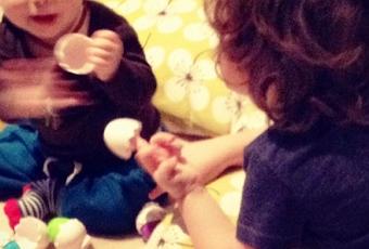 Today has been one of those days where the twins have wanted opposites in everything. One wanted to play while one wanted to sleep, one wanted to feed while the other wanted to practice standing and so on. I felt very lucky to have my little Ben around to play with Zachary while a clingy baby Zoey just wanted to be held and have hugs. I know I've said it before but Ben really is an awesome big brother, poor little fellow wasn't even feeling well today, running a temperature, but still had the patience and time for "his twins".