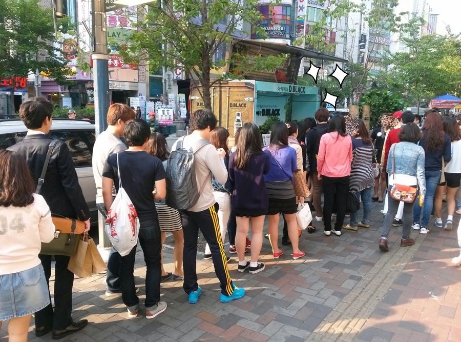 Hyundai Department Store in Sinchon where we eat in the back alley, we saw the commercial