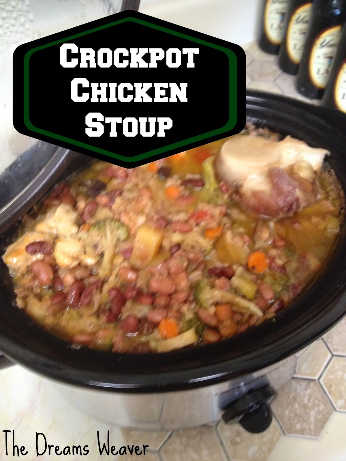 What you will need: Chicken- as much or as little as you would like, and any part of the chicken bone/bonelessBeef bones- for a richer flavor, and so our dog gets to take part in this1 onion4 potatoes1 cup baby carrots2 tomatoes1 scallion stalk1 cup barley pre soaked1 cup kidney beans pre soaked1 head of broccoli (I use the stem as well)1 cup mushrooms4-6 cups good H2O