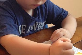 Today Ben and I made some lollipop puppets which was a lot of fun. He quickly got the hang of gluing the bits together and we ended up with some very interesting puppets that have pom poms, goggly eyes, pieces of felt and pipe cleaners stuck on in a very creative way.