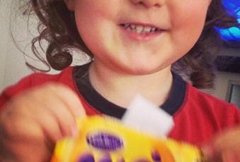 Ben got very excited this morning when he came downstairs to discover that Daddy had forgotten to put away his bag of mini eggs. In Ben's mind it was clear why they were there and he came running to me saying "Mummy look what Daddy left for me!". Mini eggs for breakfast.
