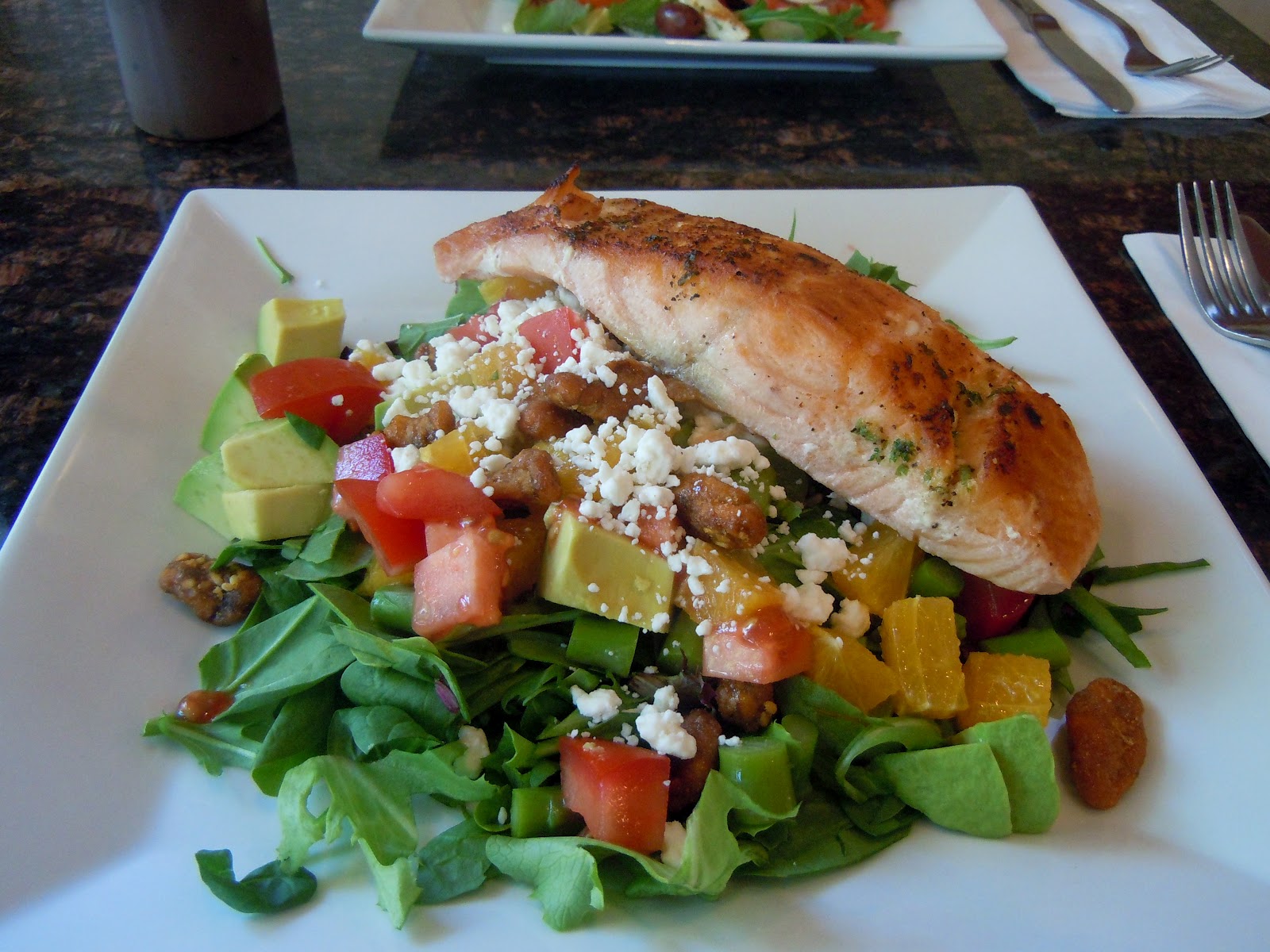 Afterwards, we retreated to The Patio Restaurant for a late lunch. For a diner-style eatery, this place has an impressive salad menu. I had the Bella salad (chopped mesclun greens, spinach, arugula, asparagus, fresh oranges, sweet walnuts, raisins, goat cheese, avocado, plum tomatoes) with grilled salmon. It was quite the pleasant afternoon. And later on, as I enjoyed a quintessential summer night in the city, I found myself having more than one "I love New York (state)" moment.