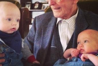 Today the twins met their Great Grandad for the first time. Zachary was fascinated by him and Zoey happily lay in him arms for ages. It was so wonderful to see my babies in the arms of my Grandad, an amazing man who I love dearly. A very special moment, a photo I'll treasure.