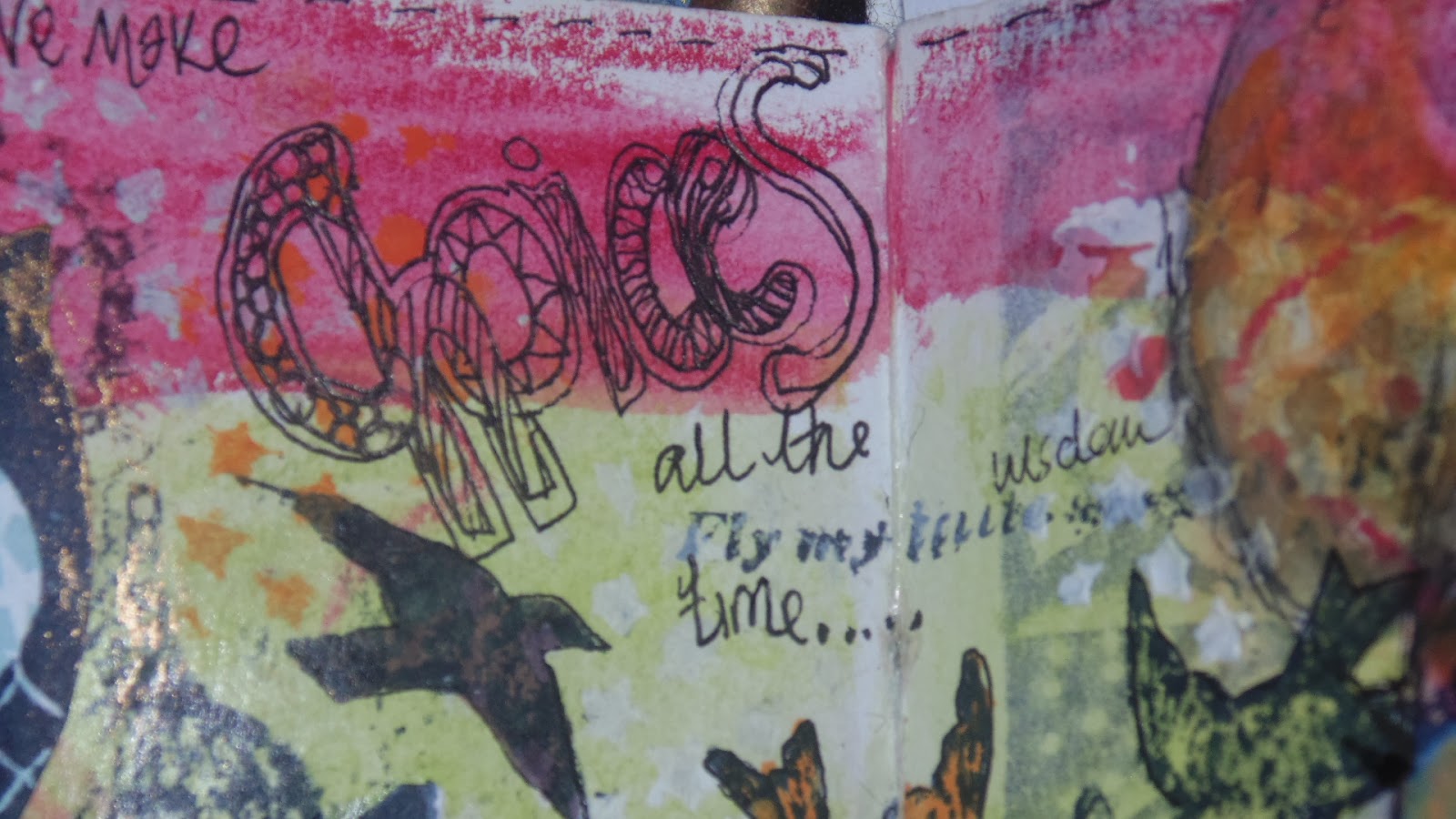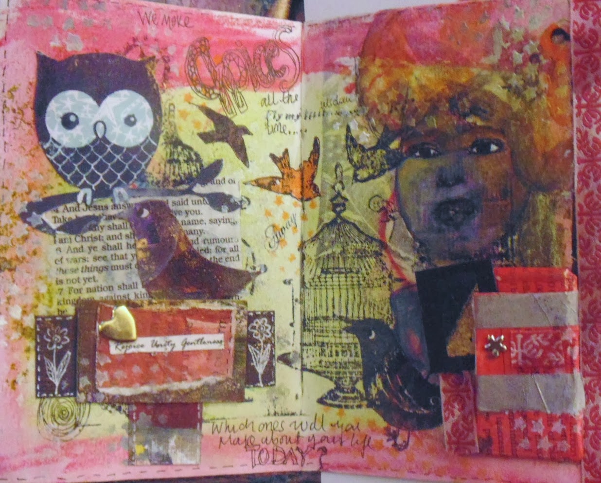 I have to continue to remind myself that my art journals are also places that I can spend time in to play, or celebrate as well as to work through anything that might be troubling me, I don't always have to have a 'set in stone idea' of what I am going to do. My page today reminds me that it is quite easy to lock our creativity away in a cage and just look at it, feeling scared to make a decision...