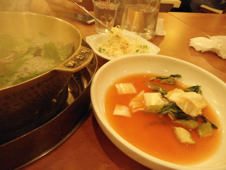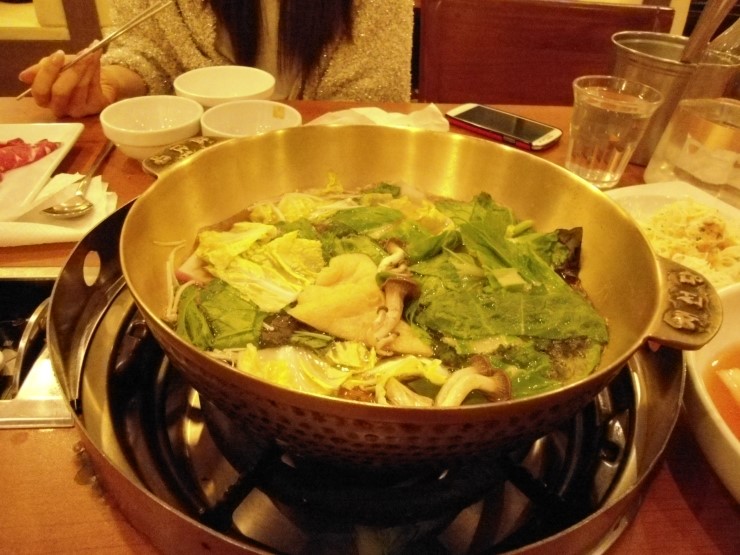 I would definitely go again but make sure it was with a group of friends I already know well. The environment is not conducive to getting to know more than one or two people at a time but for a date or small group it could be really fun and interactive.I love the shabu shabu in Korea and have been looking for a place that has Korean style shabu shabu. Most places have been more Japanese style which is okay but just not as satisfying. This place has good meat but the soup and sauces were just okay.