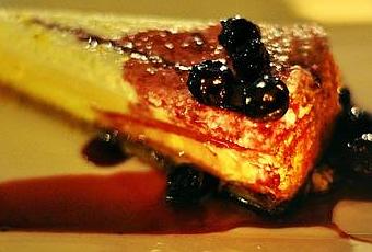 Light & rich. I know that sounds like a contradiction but that’s exactly what this was. Cheesecake with almond and biscuit crust, drizzled with blueberries.
