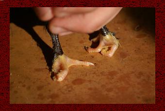 Charlie is doing well, the wounds have closed and she is walking around. Last night we introduced a stick as a roosting post hoping that the use of it would get her to start moving her toes (chicken physical therapy) but she prefers the edge of the cardboard box which she came home in and which is still in her cage.