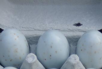 A friend stopped over yesterday for some eggs and she handed me a small egg carton filled with light blue soap eggs. The eggs looked very much like the ones, our Easter Egger: Zelda lays – a beautiful light blue in color. These, however, are Linden Leaves soap eggs and the description reads “with bran to exfoliate, olive leaf extract for it’s healing, toning properties, and cypress to simulate the circulatory system.”