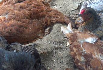 Although this looks like a chicken massacre, it’s actually a community dirt bath. Yup, like pigs to mud, chickens do love their dirt (especially on a hot day.)