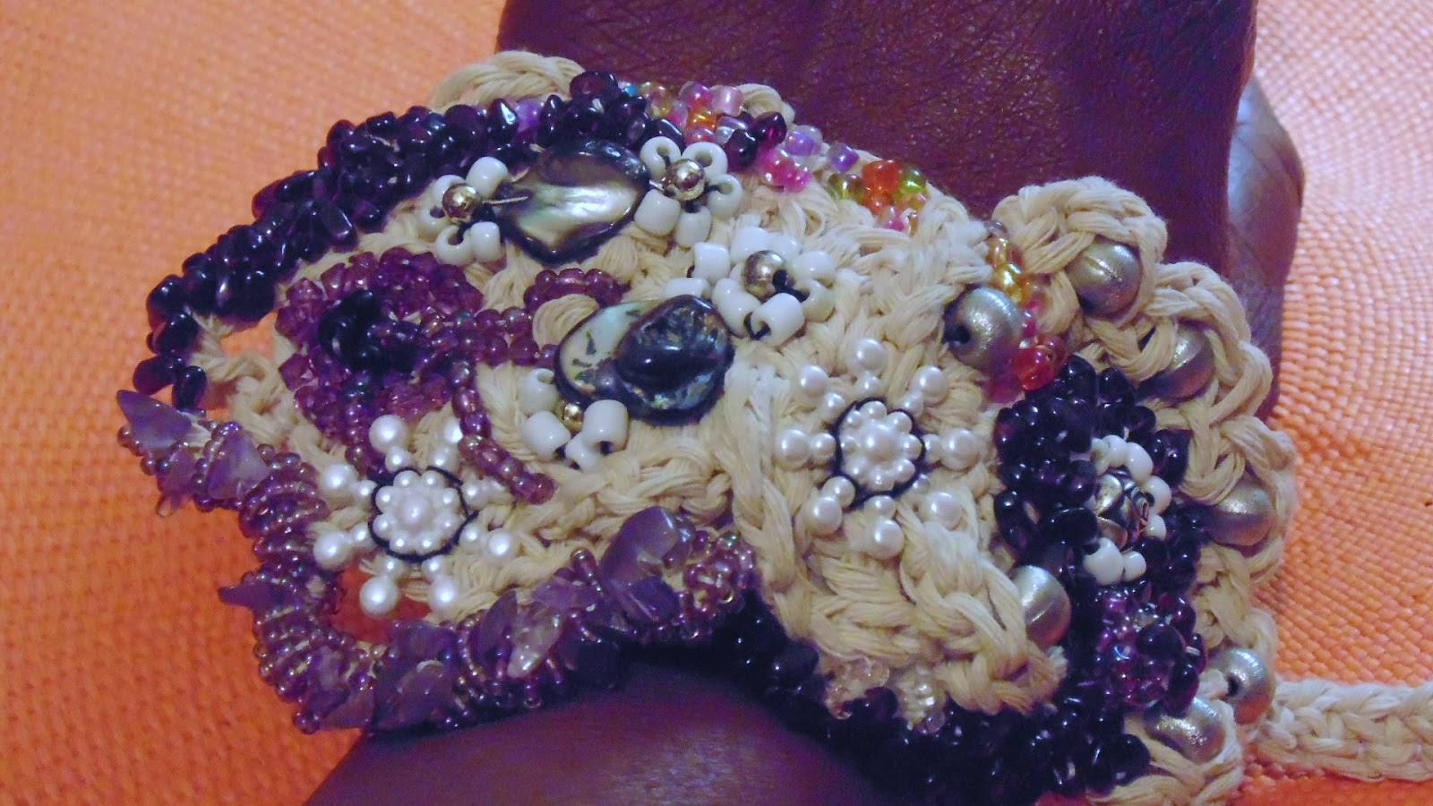 Crocheting is one of those things you can do almost anywhere, it can be soothing and relaxing. While I have been nursing a cold, alongside a internet connection that didn't feel like being connected, I have been finding making the stitches and adding the beads quite therapeutic. I am quite pleased with my chunky wrist cuff.
