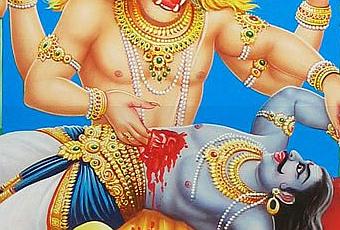 And then with the nails on his hand, Narasimha tore the asura to pieces and killed the tyrant king.