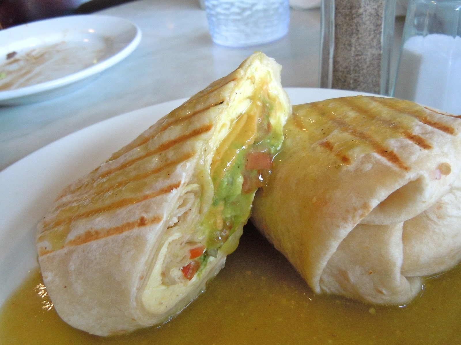 This adorable country-style, New American-esque of a restaurant serves typical brunch fare in addition to fantastic Southwestern favorites, like my Santa Fe Breakfast Burrito: fresh salsa, cheddar cheese, guacamole,