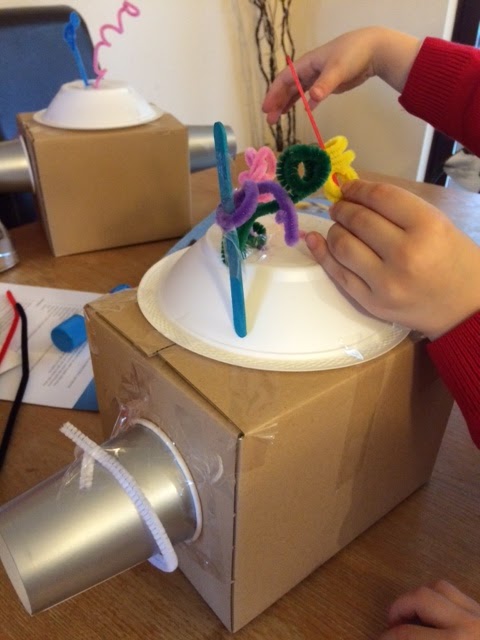 The show is on Nick. Jr and is all about young inventor called Rusty, and his team of Robots!It was a big hit with all of my boys and their party guests, but Noah in particular was a big fan and declared that Rusty was " so cute!"After watching the TV show we gave out some Rusty Rivets colouring and activity sheets, and had great fun getting arty....then it was time for robot creating!