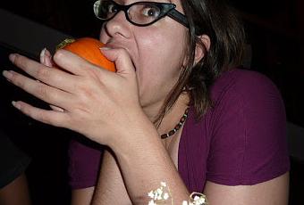 I don't actually have a lot of photographs of me because I'm usually the one behind the camera, but this one immediately came to mind. It was taken at the goodbye party that was thrown for me several jobs ago, and I just love how silly it is.