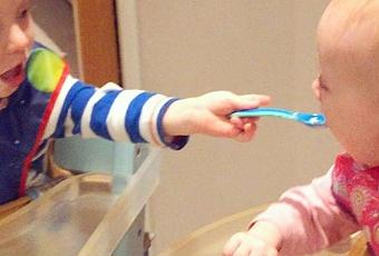 Zachary is such a little sweetheart, he loves sharing and looking after his sister and brother. He's the kind of child that if I give him a box of raisins or a biscuit he has to have another for Zoey and will happily hand his over to Ben if he wants it and run back to me and ask for another. Tonight he decided he had to share his yoghurt with Zoey, she was less keen to share hers with him, however when Ben asked for some that was a whole other story - she idolised her big brother.