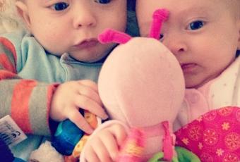 The twins got some toys from Nana and Grandad before we left Ireland, a pink butterfly for Zoey and a multicoloured dragonfly for Zachary which they were playing with today. It wasn't long however before the battle for pink butterfly began but there was no way Zoey was leaving go of it no matter how hard Zachary tried to get his hands on it.