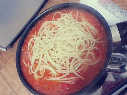 Originally I was going to do a simple Korean dish, but I think I will concentrate on pasta since I really haven’t tried cooking pasta, the way how Koreans cook it. We did'nt find time to go and grab ingredients from the supermarket instead we just utilize available foods in the storage. We found 1 pack of pasta and a lot of ripe tomatoes. That's how we end up cookin' tomato pasta.Haha.We made a delicious pasta with the help of these other ingredients: