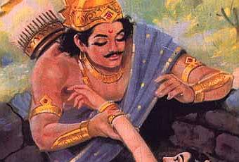 After some time, King Yayati who was out on a hunt happened to come by that way. Feeling thirsty he stopped near the well and happened to see Devayani in the well. Desirous of helping her, he took off his upper garment, reached down to her and pulled her out of the well.