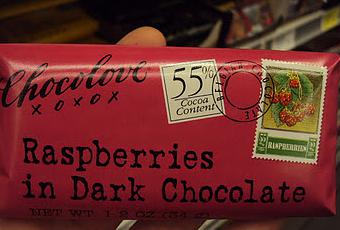 I bought a raspberry chocolate bar and my Aunt Shawna bought an orange chocolate bar... and we shared them :) The wrappers are so cute! I saved them and I'm going to put them in my binder along with my GINORMOUS Hershey bar wrappers :)