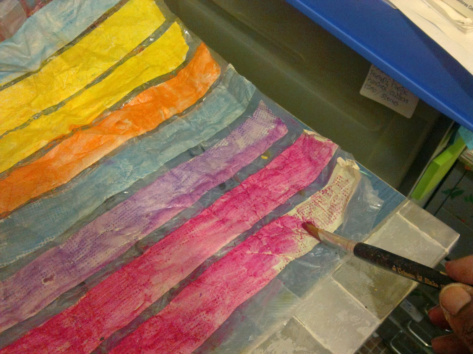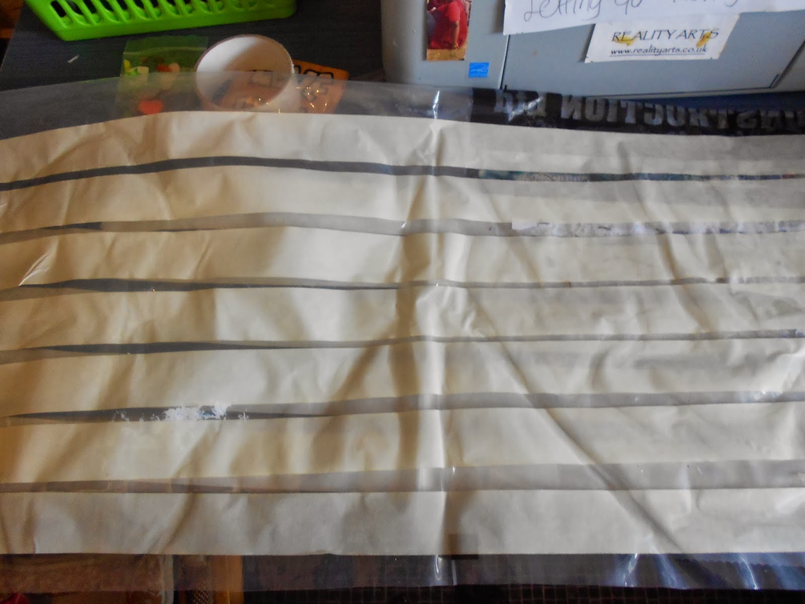 I spread out strips of the tape on the plastic sheeting
