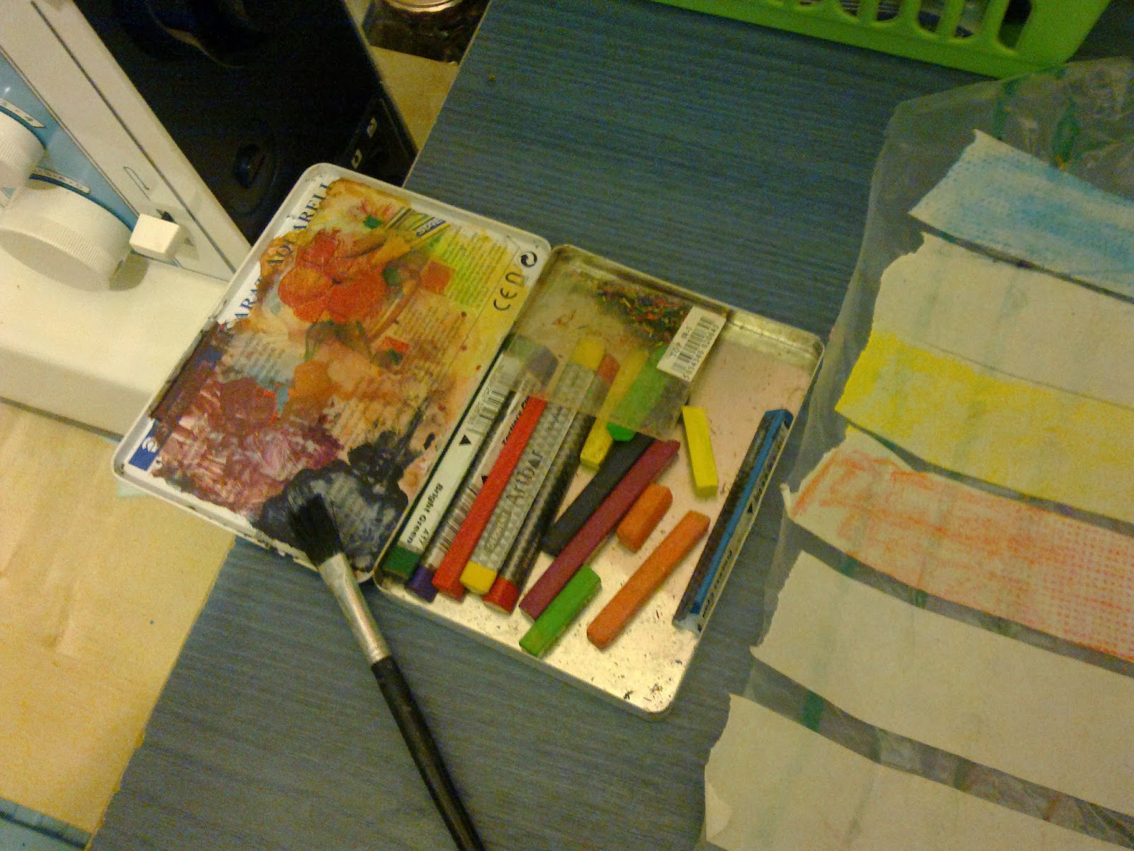 And then selected some paints to use on the tape. Here I am using inktense blocks and art bars.