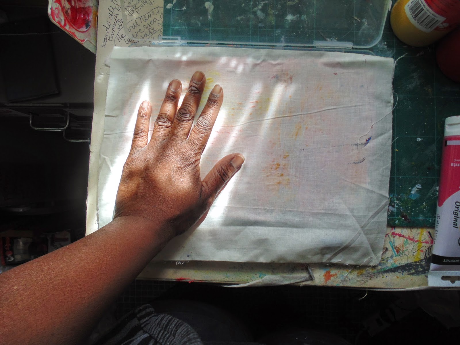 I decided that I was going to print on some fabric. I have a mini book that I want to make a cloth bound cover for. It is a piece of white cotton that I have cut to size of aprox a piece of A4 paper.