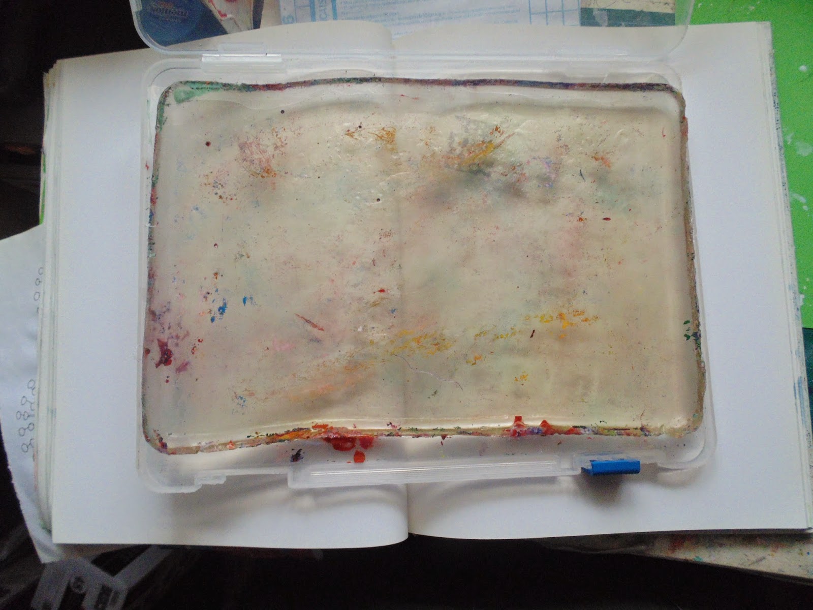 Glycerinsquare container to set the mixturewater2 x acetate sheets to prevent dryingContainer to store Gelli plateOnce you have made your gelatin plate you are ready to go.