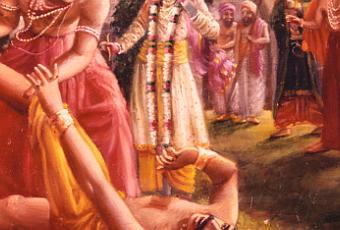 Some years later when his friend king Kamsa was killed by his nephew Krishna, Jarasandha whirled a mace ninety nine times and hurled it towards Mathura, where Krishna was residing. The citizens of the place where the mace fell went and informed Krishna of this occurrence. The killing of Kamsa was the beginning of his rivalry with the mighty Jarasandha.