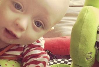 My littlest man doesn't like when I pick his sister up instead of him. Here he was today while we were playing together, protesting that I had Zoey sitting on my lap instead of him. It's hard to resist those pleading eyes not to mention his cute babbling as he struggles to make his way over to me.
